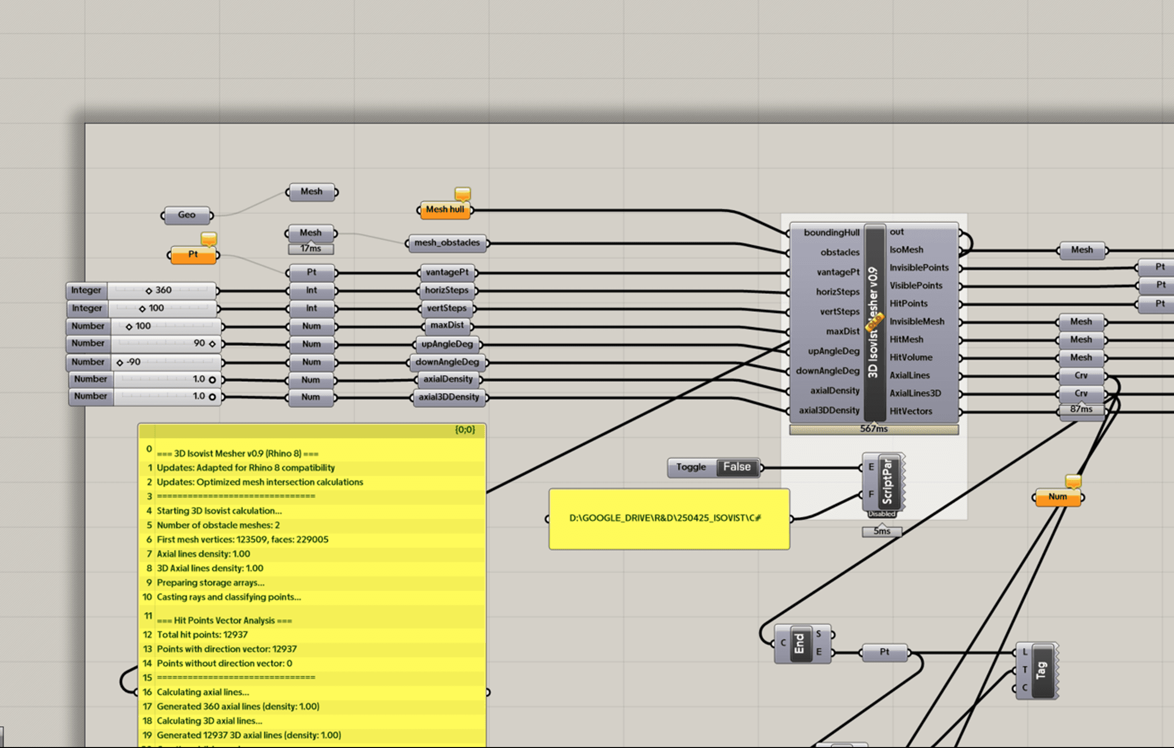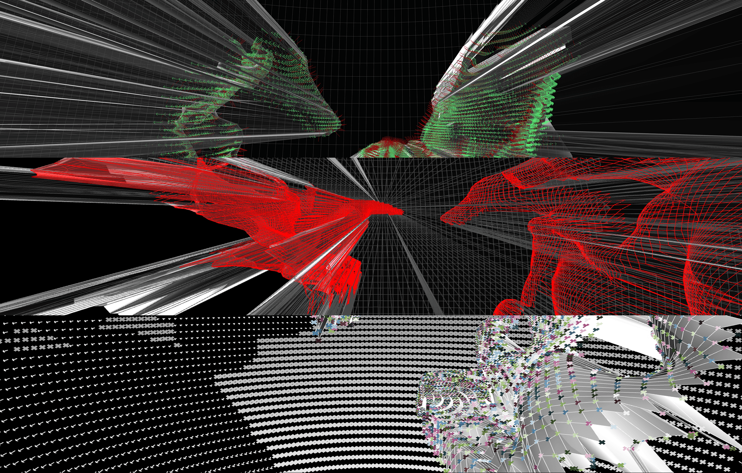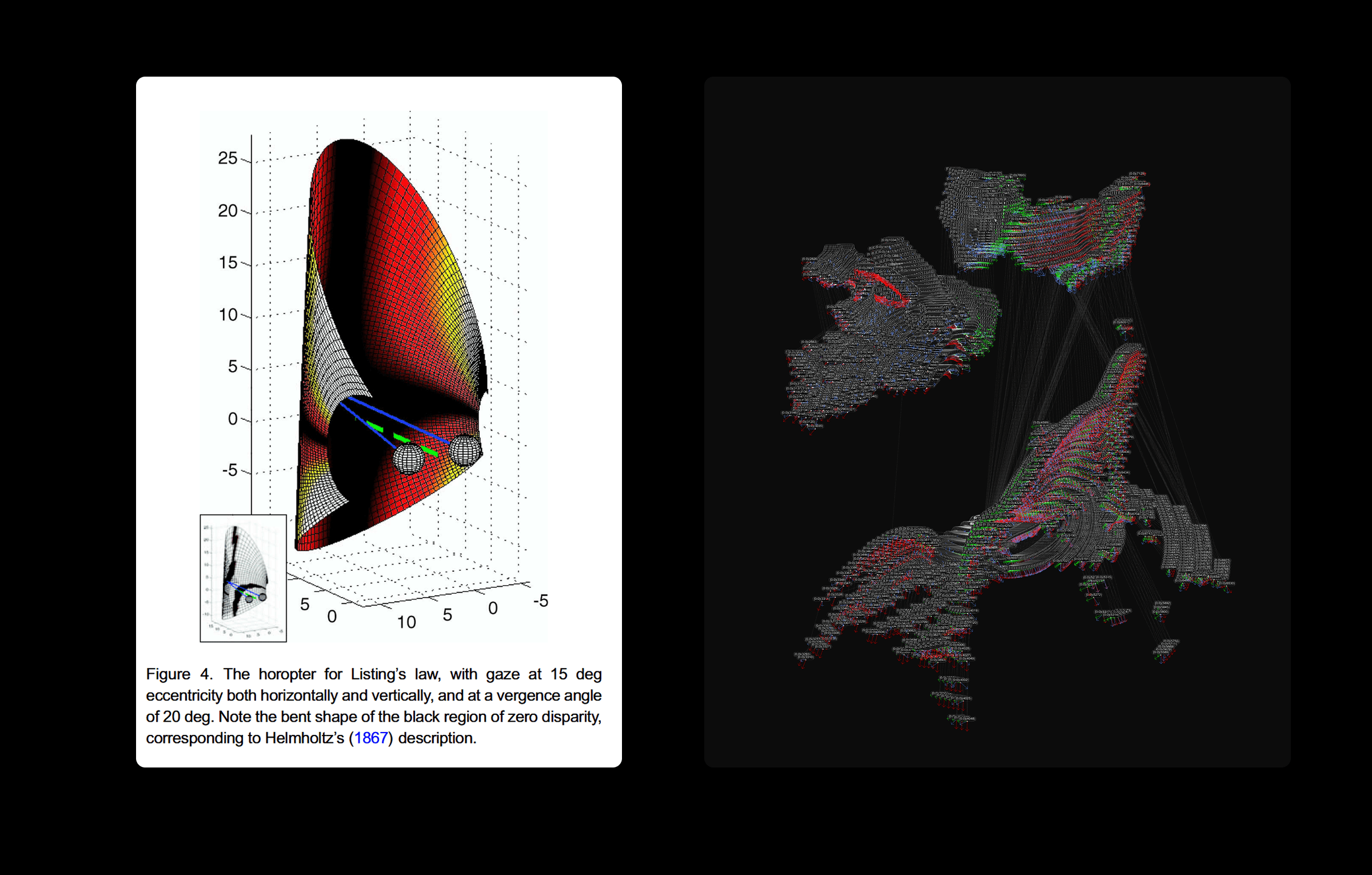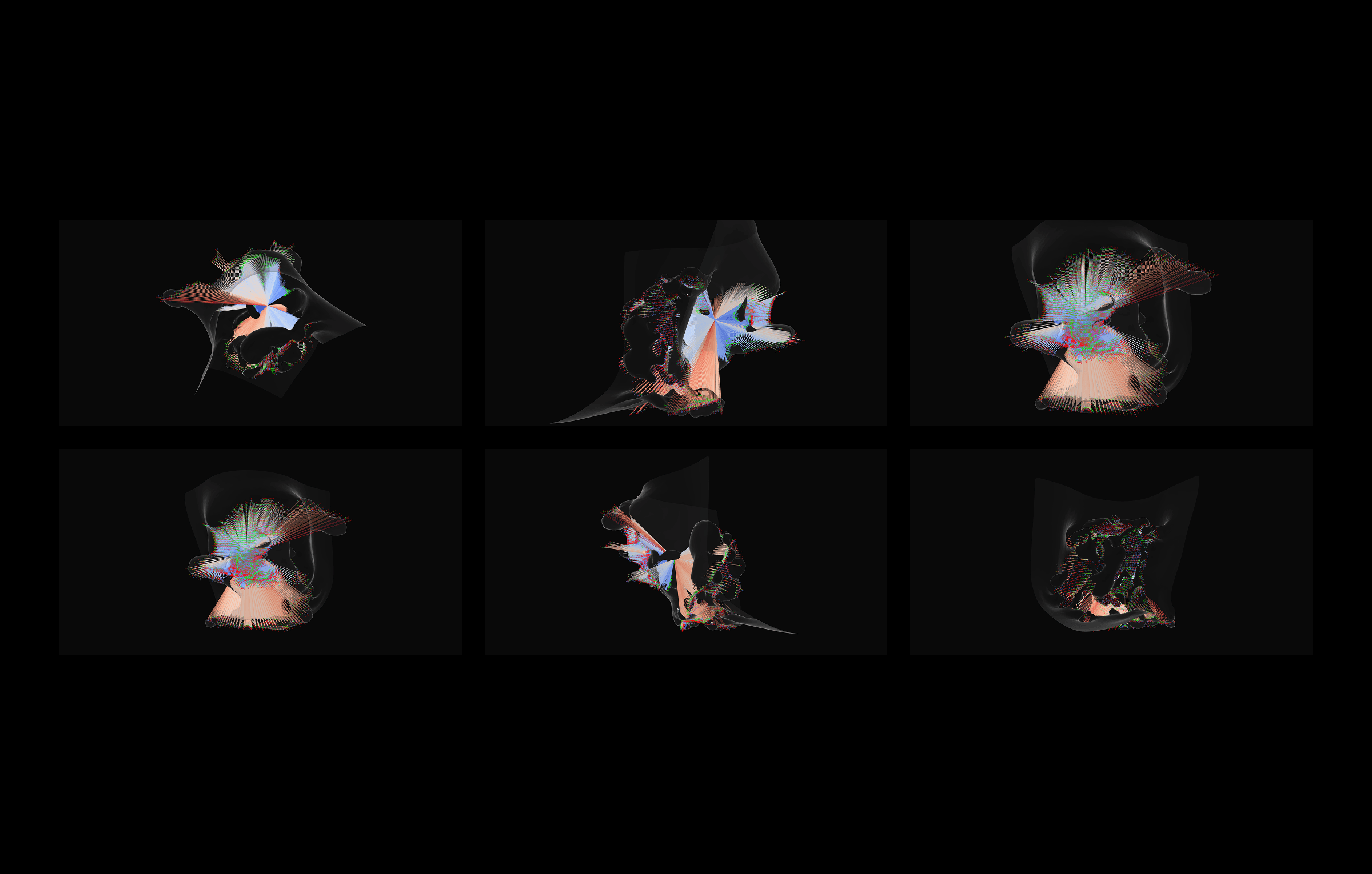The Algorithmic Retina treats vision as a computational construct that can generate space rather than simply record it. Using custom scripts on 3D scans of sculptures, it simulates binocular vision and dynamic fields of view, challenging fixed, orthographic representation. The project combines isovist analysis and visibility graphs to test whether objects can develop their own surrounding space through patterns of sight. Architecture and vision science intersect in a 'simulated retina': not a flat image plane, but a shifting horizon where each gaze produces its own geometry and atmosphere.